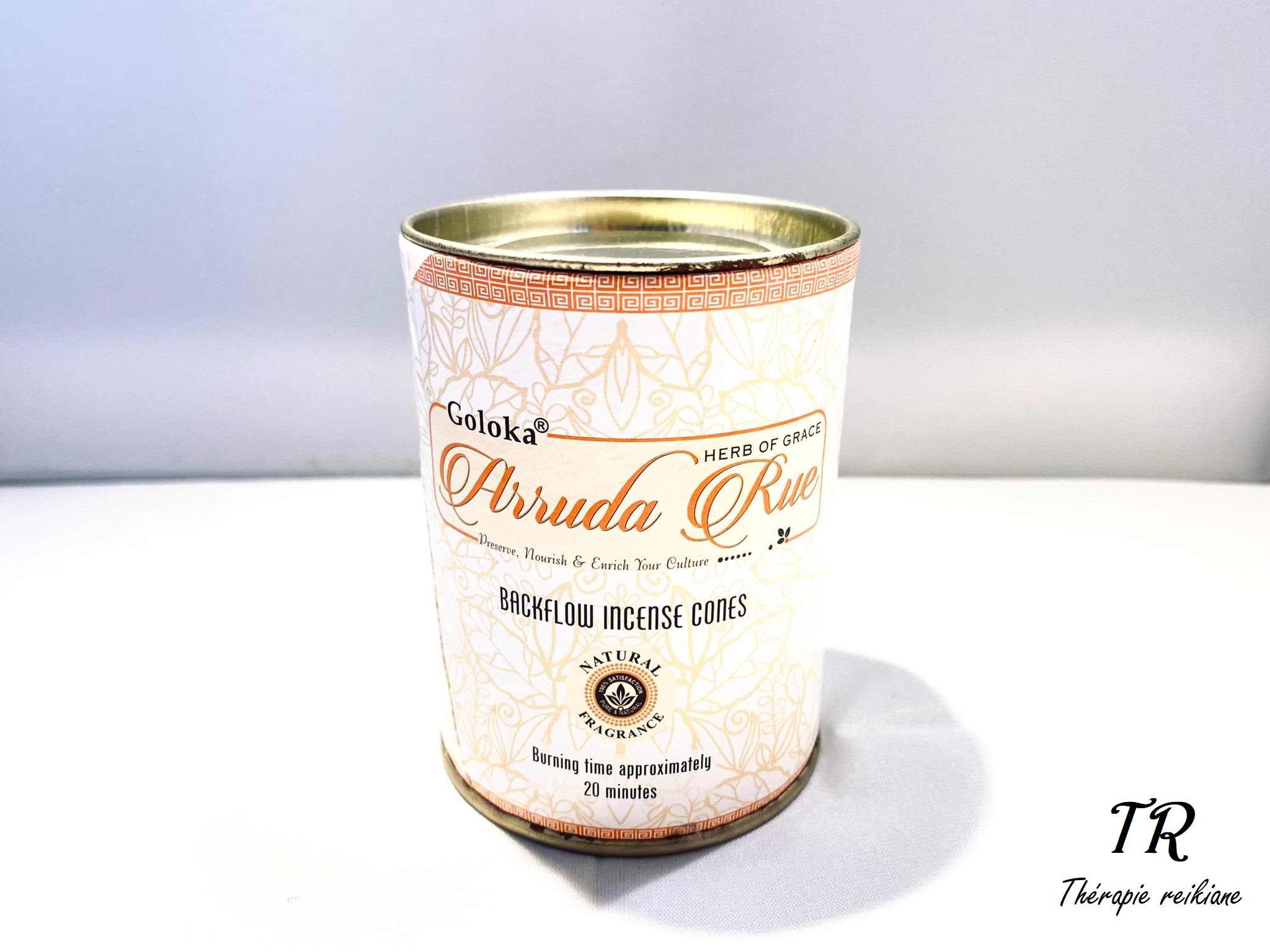 Encens Cones Flux pour une utilisation dans les cascades, emballé dans une boîte avec un couvercle.